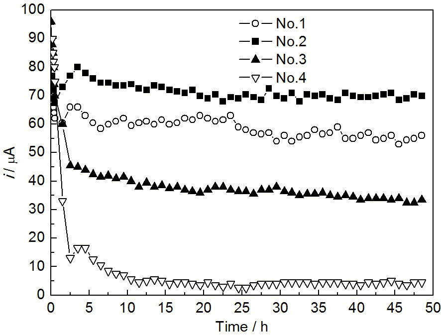 Fig.4 Sample 1#~4# coupling current change with time relationship curves