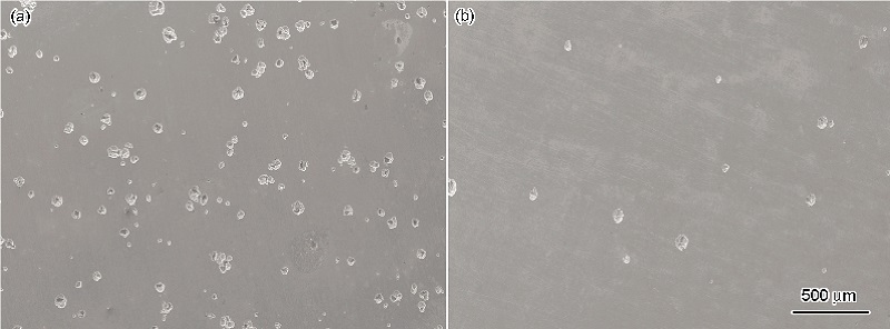 图2为UFG-304L SS和CG-304L SS在0.05 mol/L H2SO4+ 0.05 mol/L NaCl溶液中循环极化后表面腐蚀形貌的SEM像. 由图可见, 在UFG-304L SS表面分布的点蚀坑明显多于CG-304L SS, 表明UFG-304L SS在含Cl?溶液中点蚀敏感性增加, 更容易发生点蚀.