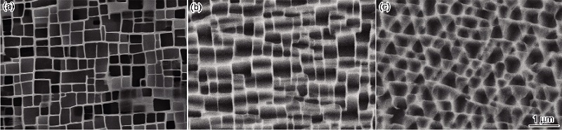 (2) [001], [011]和[111]取向DD9合金热处理态γ’相呈立方状, 在垂直于晶体生长方向截面上观察, [001]取向γ’相为正方形, [011]取向γ’相为矩形, [111]取向γ’相为多边形.