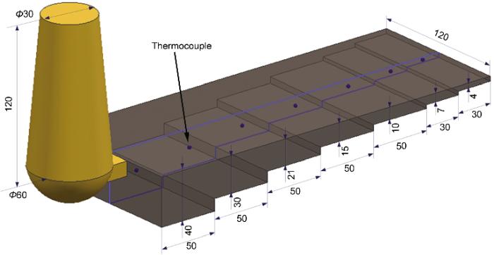 ![]() | Fig.4 Schematic of dimensions of the step shape casting used to study the effects of cooling rate (unit: mm)图4 实验用阶梯铸件几何尺寸示意图 |