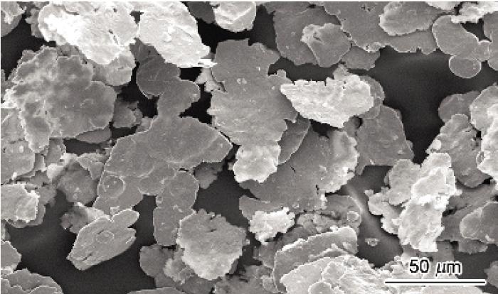 实验用镍粉为片状标准水基镍粉, 呈鳞片状, 尺寸为30-50 μm(图1)。