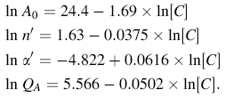 where A0, n′, a′ and QA are constants closely correlated with the nominal carbon content of the low-carbon steels and can be formulated in the following forms: