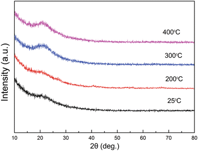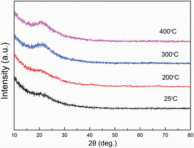 Figure 1 shows the XRD patterns of MgF2 films annealed at different temperatures. The as-deposited MgF2 film exhibited a broad peak, indicating the amorphous characteristic of the film due to the absence of intense diffraction peaks. With the increase in annealing temperature, the intensity of the broad peak slightly increased. The results showed that the main phase of the prepared MgF2 films was amorphous.
