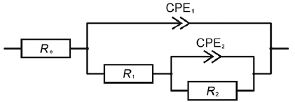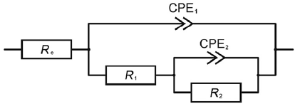 Fig. 8. Equivalent electric circuit used for simulation of charge transfer process at Mg alloy with coating/electrolyte interface, according to the experimental impedance spectra data.
