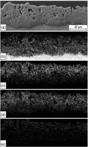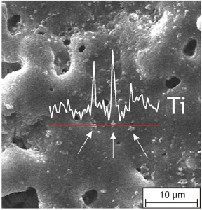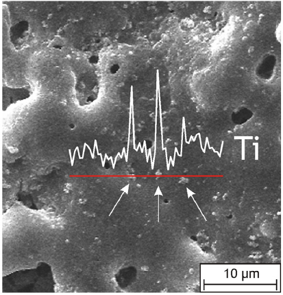 Electron micrographs of sample surfaces were obtained using a Carl Zeiss EVO 40 electron microscope (Carl Zeiss, Germany). Elemental composition of surface layers was determined by energy dispersive spectroscopy (EDS) using an INCA x-act energy-dispersive analyzer (Oxford Instruments, USA).