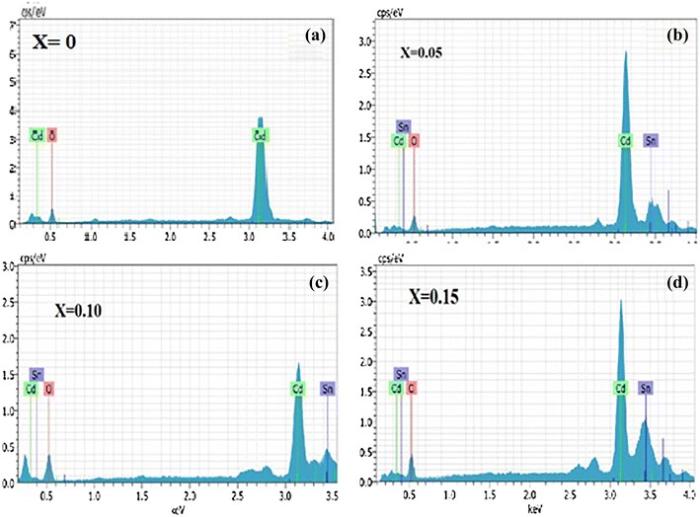 Table 1 Quantitative analysis of (1-x)CdO-xSnO2 nanocomposites for x = 0, 0.05, 0.10 and 0.15