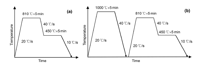 Fig. 1 Schematic diagram of heat treatments: a Process A; b Process B