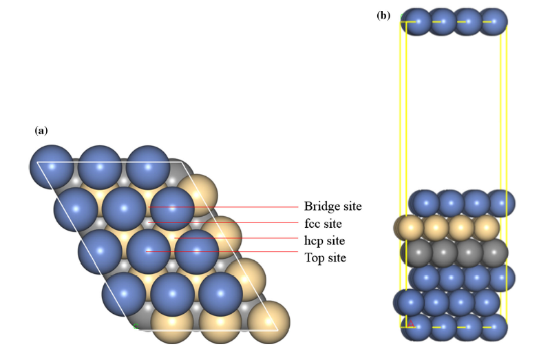 The calculation of density functional theory (DFT) was realized by VASP (Vienna ab initio simulation package) [16]. DFT is an accurate method to calculate the electronic structure, crystal energy and orbital interaction. It can help us have a better understanding of the fundamental phenomenon of the alloy surface and interface at an atomic scale. In this work, we selected projector-augmented plane wave (PAW) [17] as basic wave, using Perdew-Burke-Ernzerhof (PBE) [18] for the exchange correlation functions between electrons within the generalized gradient approximation (GGA) considering the first-order gradient of electron density. Compared with the local density approximation (LDA), GGA method can provide more accurate energy and structure.