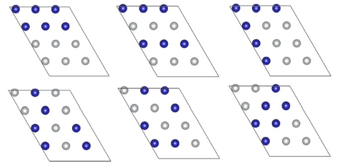 Fig. 2 Arrangements of Cr in the Ni(111) surface layer. The blue one represents chromium and the gray one represents nickel