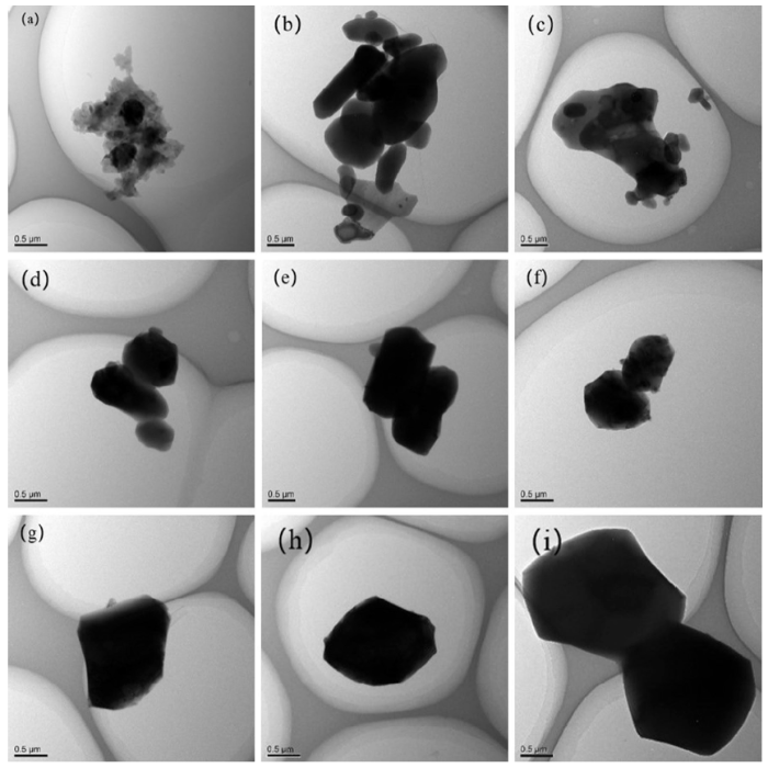 Fig. 6 TEM images of the green body and of the samples sintered at different temperatures: a green body; b 1200 °C; c 1250 °C; d 1280 °C; e 1300 °C; f 1350 °C; g 1400 °C; h 1450 °C; i 1500