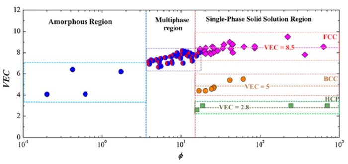 ... Map of VEC and $\phi$ for different high-entropy alloys [24]