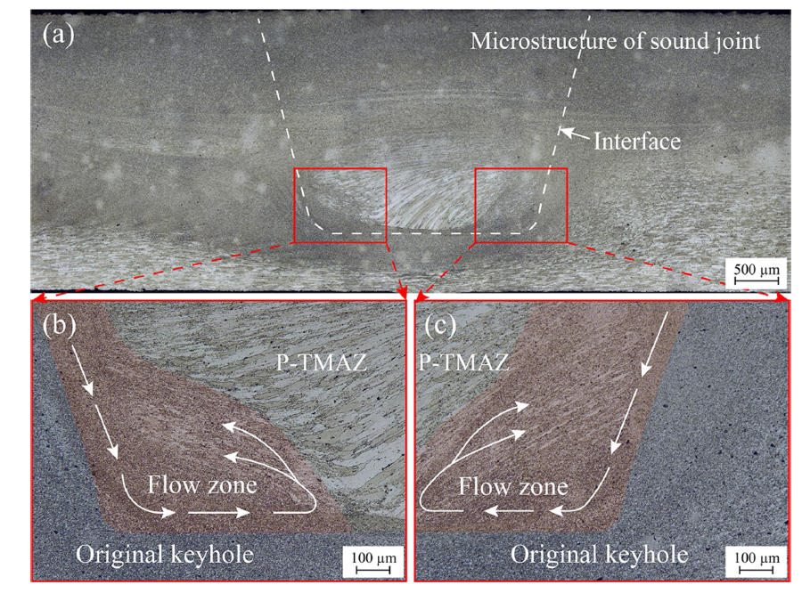 | Fig. 14 Microstructures: a sound joint, interfaces of b the left side, c the right side |