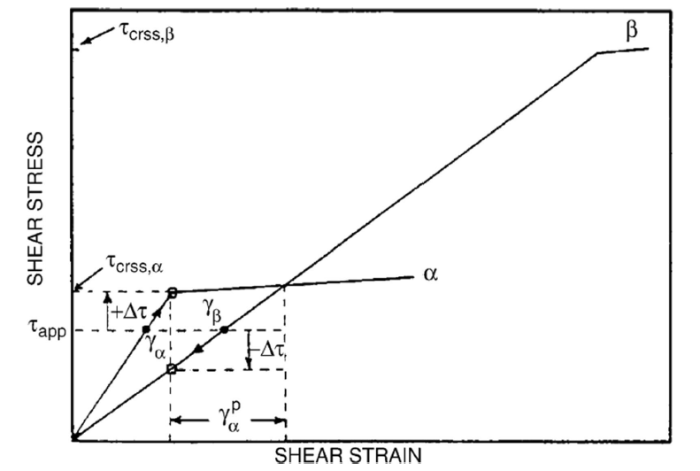 Schematic diagram showing the relationship among applied stress (τapp), interaction stress (△τ) and actual stress of α and β phases [51]