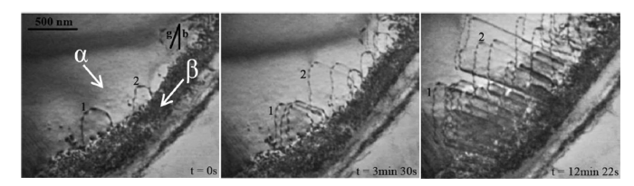 In situ TEM observation of the dislocation emission from a αp/β interface [54]